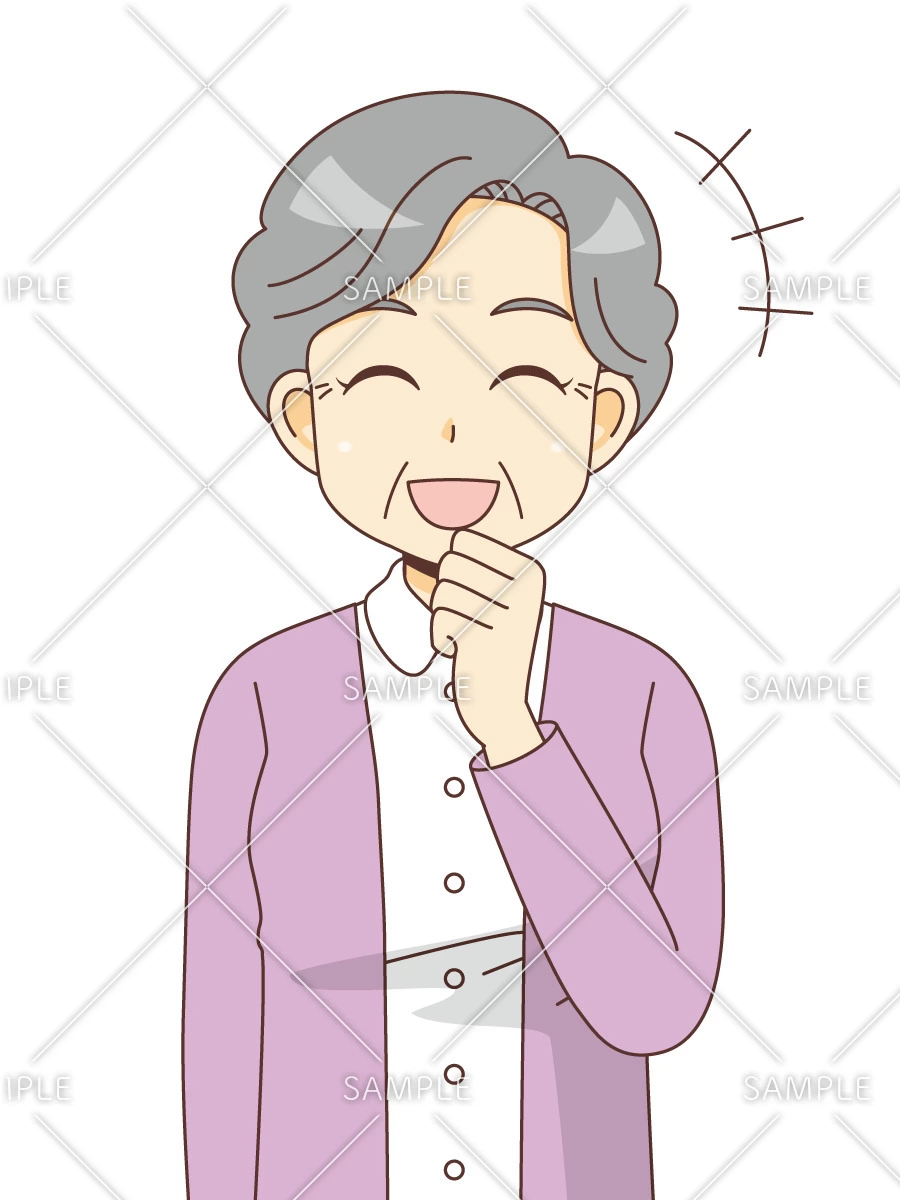 商用利用可能な笑っている女性高齢者(高齢者:おじいさん・おばあさん)のイラスト(バストアップ)です。会員の方ならどなたでも無料でダウンロードできます。老人ホームやデイサービスなどの介護施設をはじめ、さまざまな場面でご活用ください。