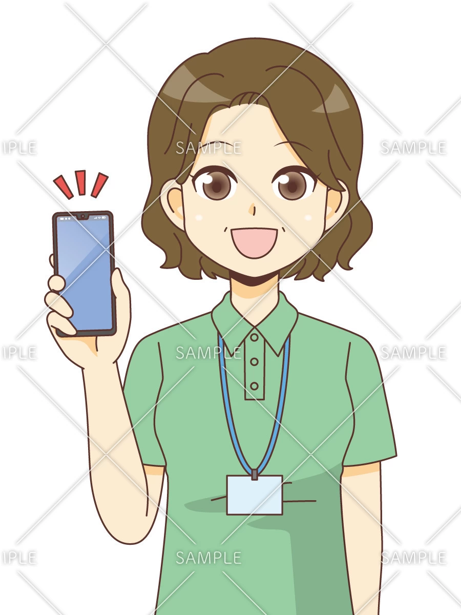 商用利用可能なスマートフォンを持っている女性ケアマネジャー(ケアマネジャー・社会福祉士)のイラスト素材です。会員の方ならどなたでも無料でダウンロードできます。老人ホームやデイサービスなどの介護施設をはじめ、さまざまな場面でご活用ください。