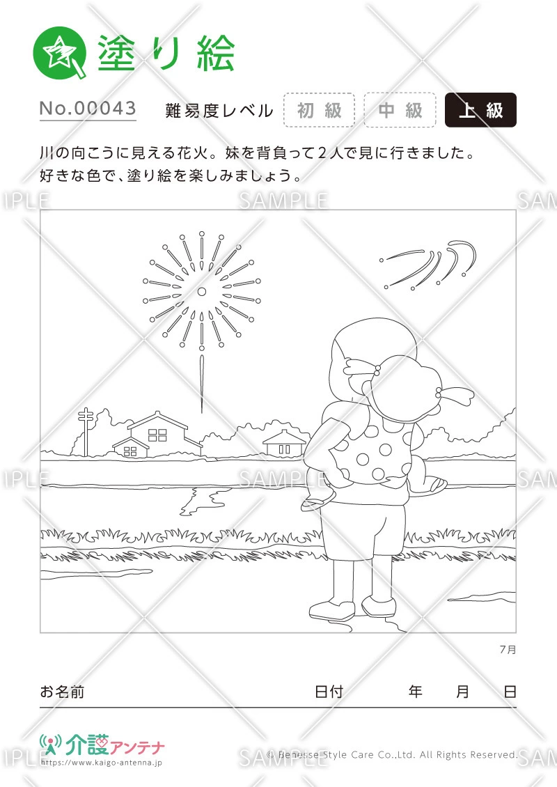 塗り絵「花火」 - No.00043(高齢者向け塗り絵の介護レク素材)