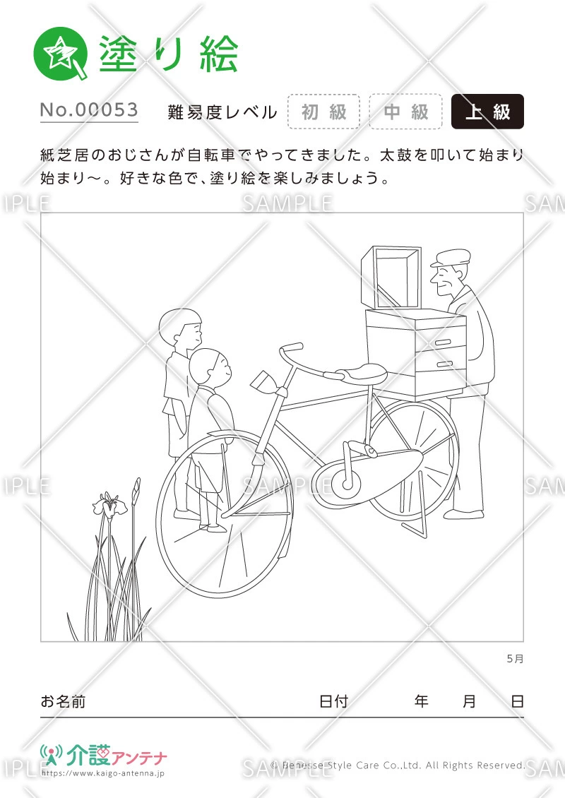 塗り絵「紙芝居屋さん」 - No.00053(高齢者向け塗り絵の介護レク素材)