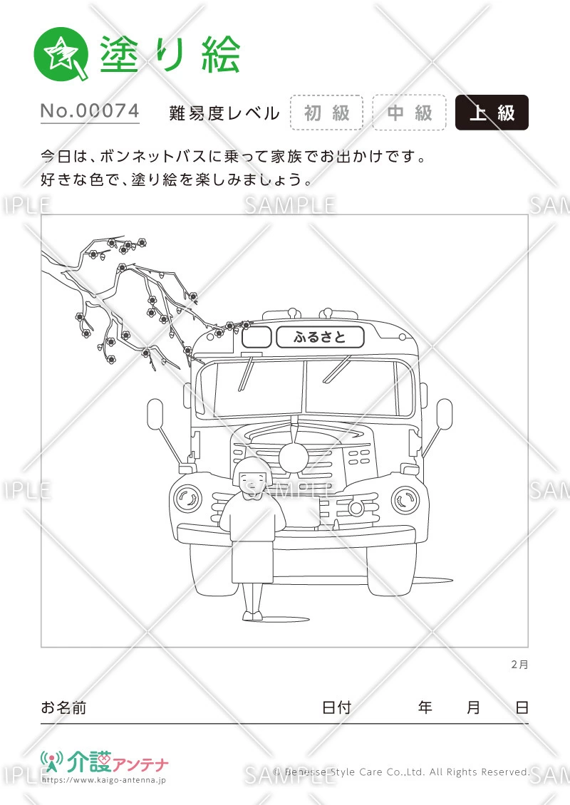 塗り絵「ボンネットバス」 - No.00074(高齢者向け塗り絵の介護レク素材)
