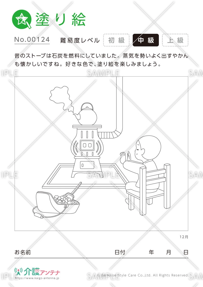 塗り絵「石炭ストーブ」 - No.00124(高齢者向け塗り絵の介護レク素材)