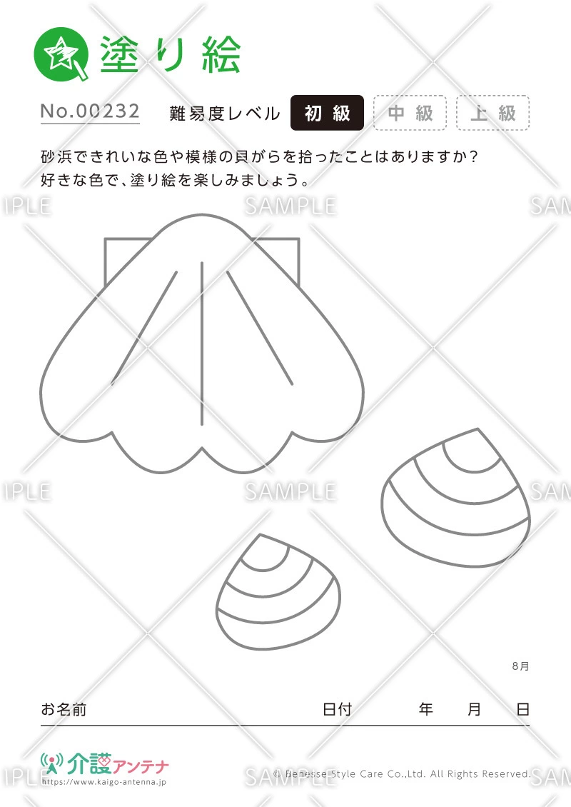 塗り絵「貝がら」 - No.00232(高齢者向け塗り絵の介護レク素材)