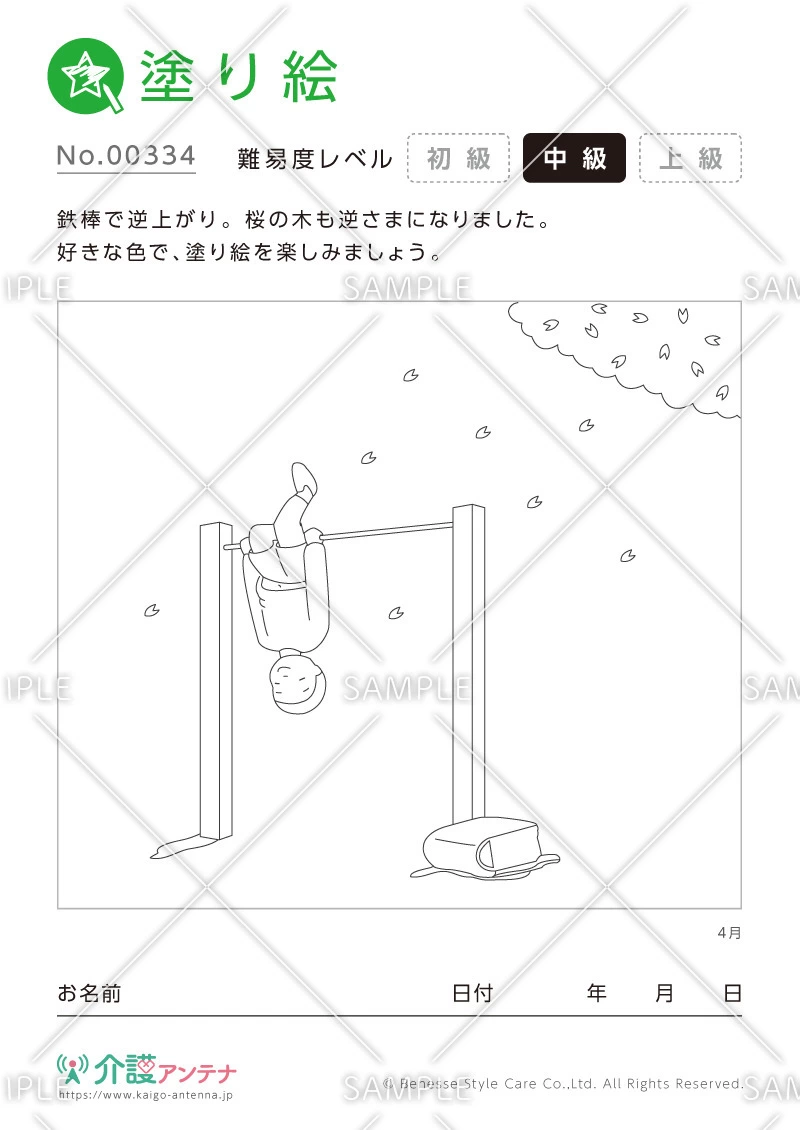 塗り絵「鉄棒で逆上がり」 - No.00334(高齢者向け塗り絵の介護レク素材)