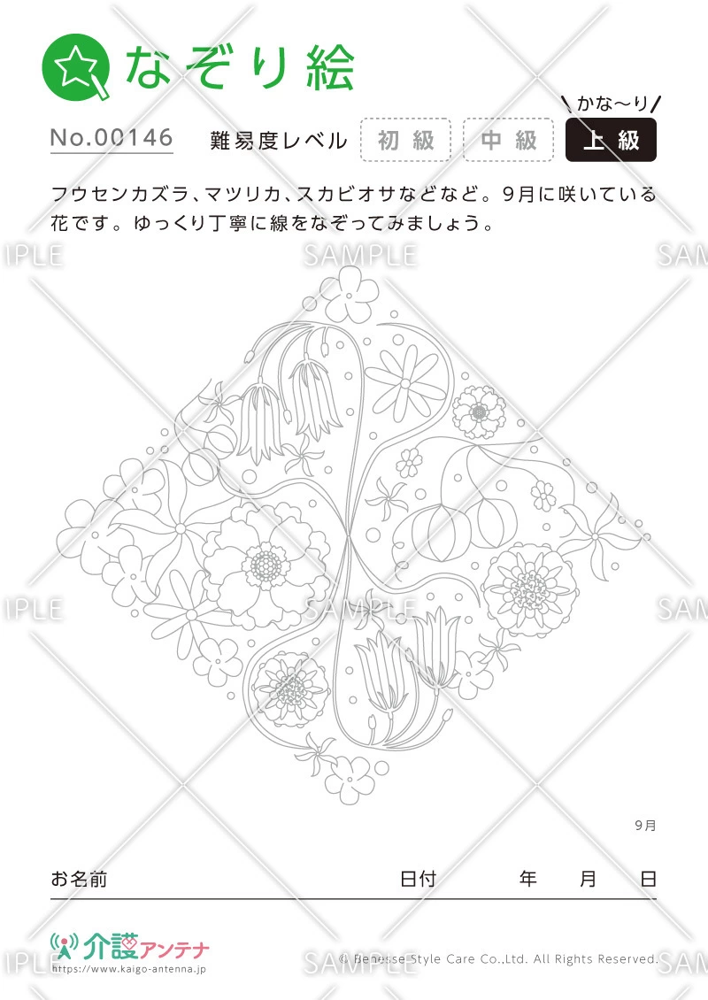 大人のなぞり絵「9月の花」 - No.00146(高齢者向けなぞり絵の介護レク素材)