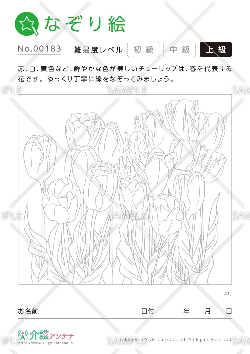 なぞり絵「4月の花 チューリップ」 - No.00183(高齢者向けなぞり絵の介護レク素材)