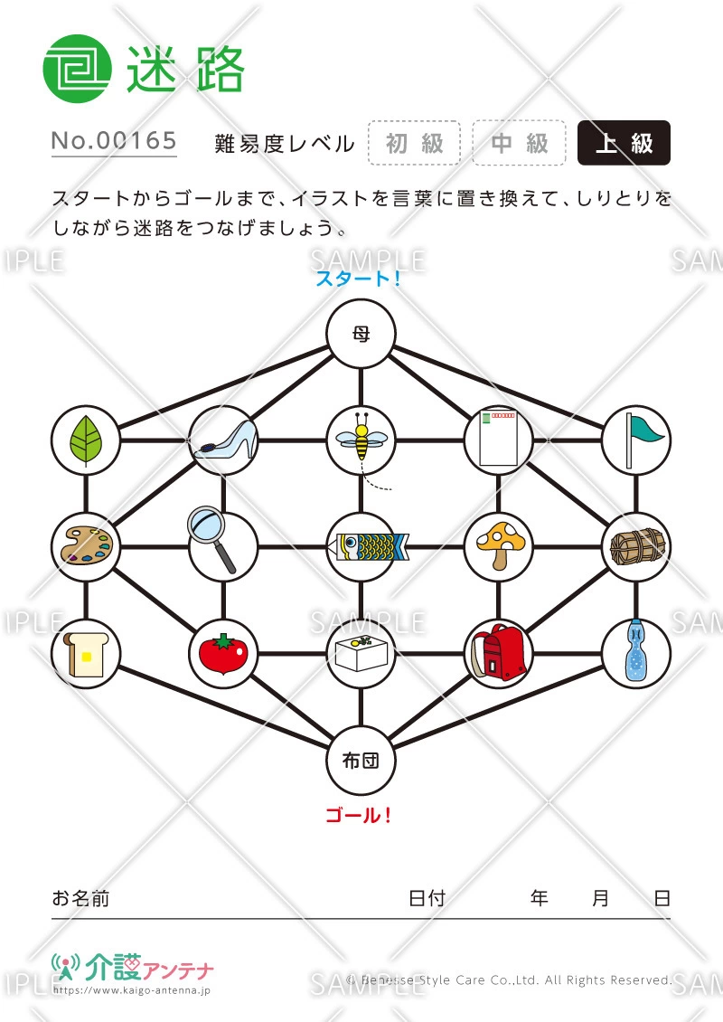 しりとりの迷路 - No.00165(高齢者向け迷路の介護レク素材)