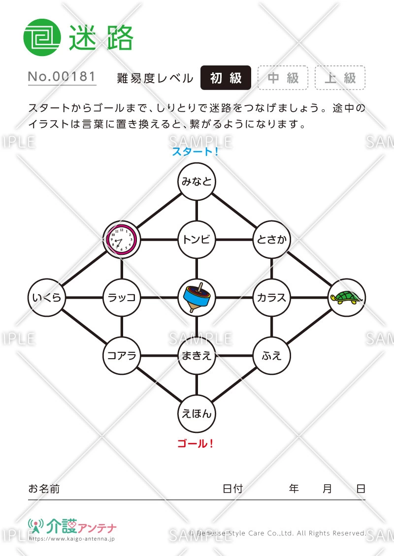 しりとりの迷路 - No.00181(高齢者向け迷路の介護レク素材)