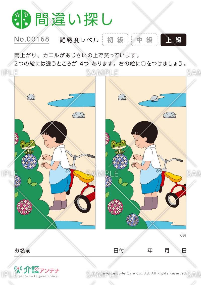 間違い探し「アジサイとカエル」 - No.00168(高齢者向け間違い探しの介護レク素材)