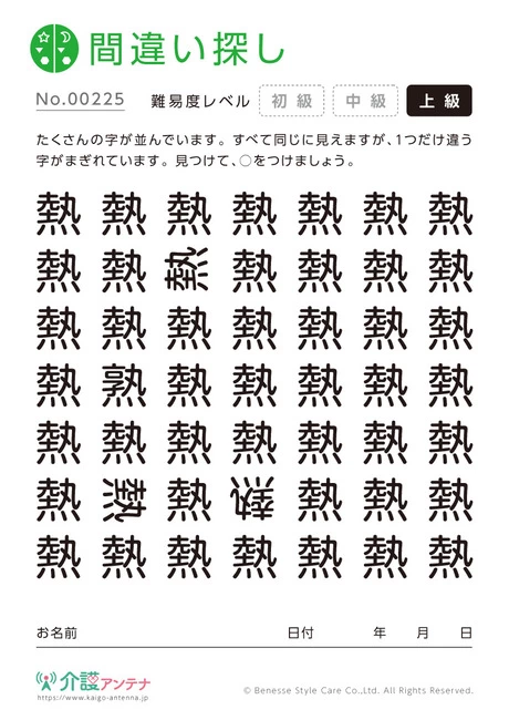 漢字の間違い探し - No.00226(高齢者向け間違い探しの介護レク素材)
