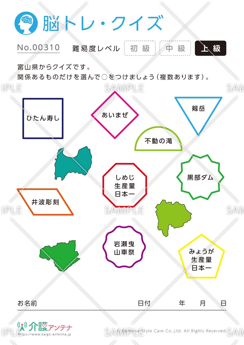 富山県の脳トレ・クイズ - No.00310(高齢者向け脳トレ・クイズの介護レク素材)