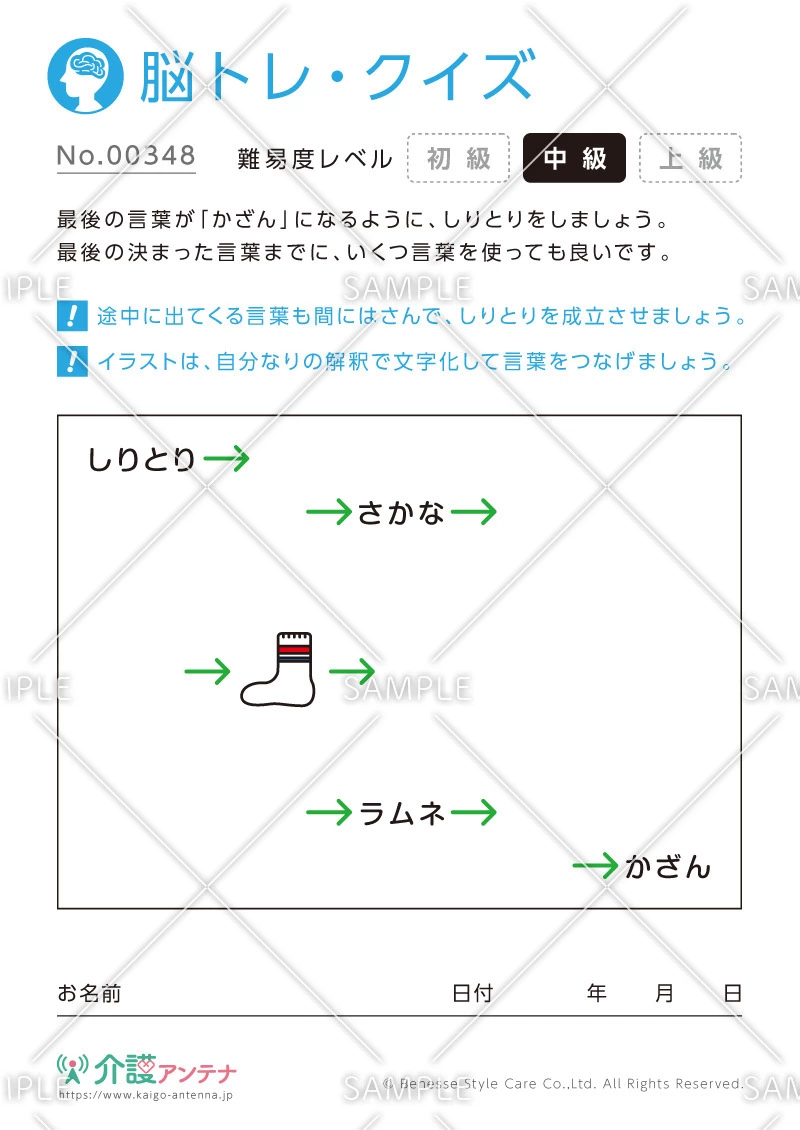 しりとりの脳トレ・クイズ - No.00348(高齢者向け脳トレ・クイズの介護レク素材)