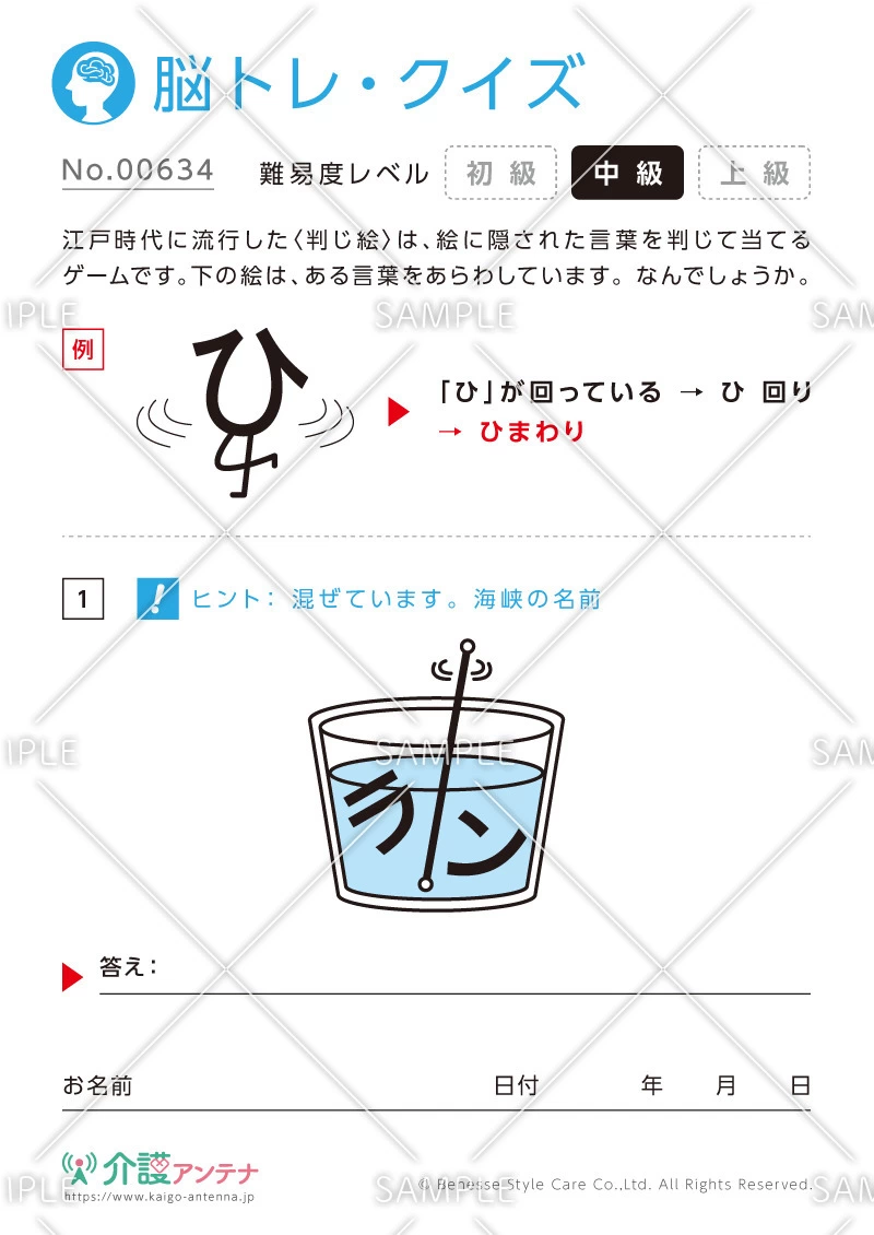 老人ホームやデイサービスセンター、ご自宅などで印刷してお使いいただける無料の高齢者向け介護レク素材(脳トレ・クイズ・中級)です。