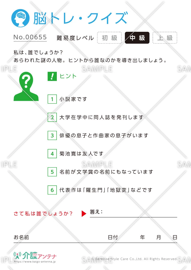私は誰でしょう?脳トレ・クイズ - No.00655(高齢者向け脳トレ・クイズの介護レク素材)