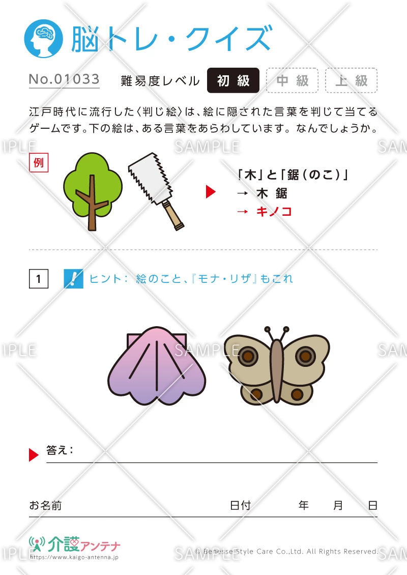老人ホームやデイサービスセンター、ご自宅などで印刷してお使いいただける無料の高齢者向け介護レク素材(脳トレ・クイズ・初級)です。
