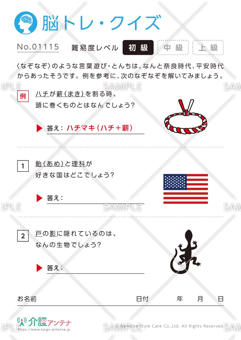 老人ホームやデイサービスセンター、ご自宅などで印刷してお使いいただける無料の高齢者向け介護レク素材 単語をつなげて違う単語を作るなぞなぞ脳トレ・クイズ(脳トレ・クイズ・初級)です。