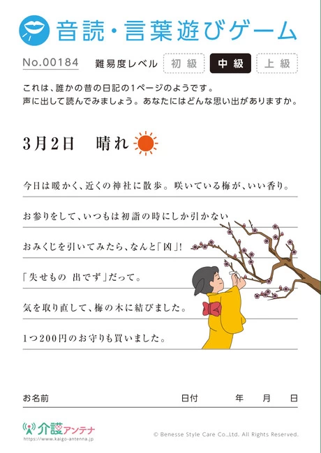 老人ホームやデイサービスセンター、ご自宅などで印刷してお使いいただける無料の高齢者向け介護レク素材(音読・言葉遊びゲーム・上級)です。
