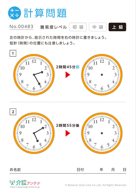 老人ホームやデイサービスセンター、ご自宅などで印刷してお使いいただける無料の高齢者向け介護レク素材(計算問題・上級)です。