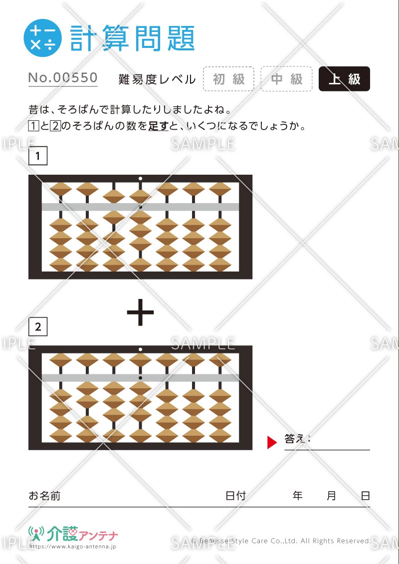 そろばんの計算問題-No.00550(高齢者向け計算問題の介護レク素材)