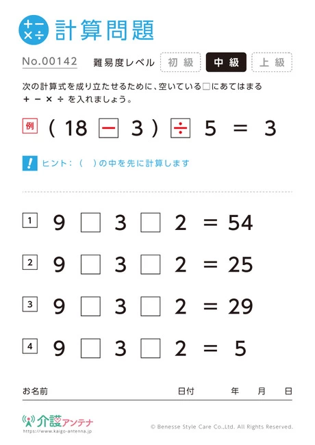 老人ホームやデイサービスセンター、ご自宅などで印刷してお使いいただける無料の高齢者向け介護レク素材(計算問題・初級)です。