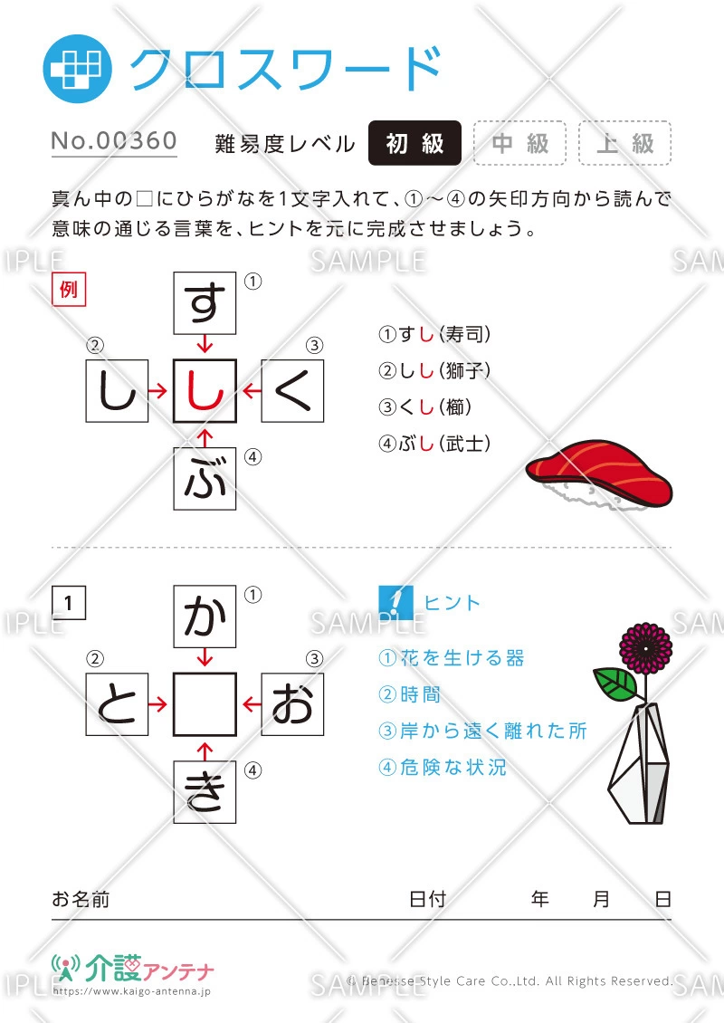 ひらがな穴埋めクイズ -No.00360(高齢者向けクロスワードの介護レク素材)