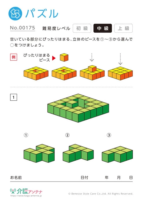 空間に立体ピースをはめるパズル - No.00205(高齢者向けパズルの介護レク素材)