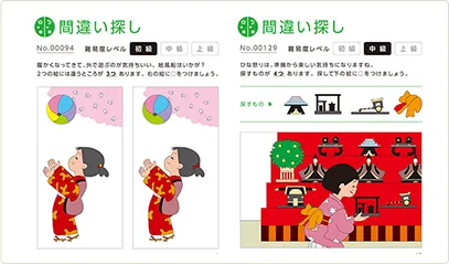 介護アンテナでは脳トレ、塗り絵、計算問題などバラエティ豊かなレク素材を5000件以上掲載しています。季節・行事・状況に合わせて選べるほか、初級・中級・上級と3つの難易度があり飽きずに取り組めます。回答とセットになっているため、ダウンロード後すぐにお楽しみいただけます。