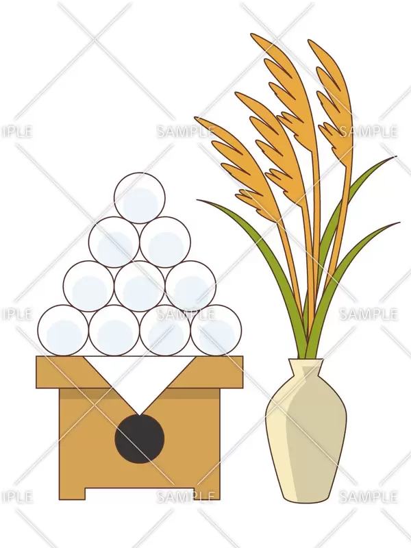 お月見団子とススキが描かれた日本の伝統的な風物詩のイラストです。秋の名月を祝うお月見では、丸い団子をお供えし、豊作を祈り、 ススキは稲穂に見立てられ、魔除けとして飾られます。お月見イベントの装飾や告知のチラシなどのワンポイントとしてもご利用ください。