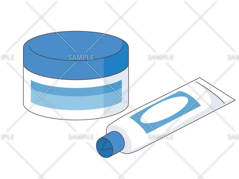 軟膏剤のイラストです。プラスチック容器とチューブタイプの2種類が描かれています。こちらのイラストは、入浴後に軟膏剤を塗る方に向けたお便りやお知らせなどに適しています。イラストを添えることで視覚的に印象づけられ、塗り忘れ防止に役立つでしょう。