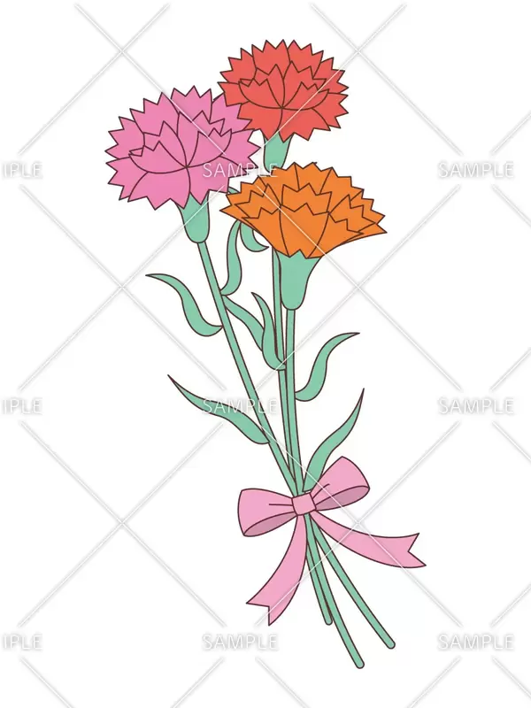 母の日の花として親しまれているカーネーションのイラストです。ドレスのフリルのように波打つ花びらが特徴的ですね。可憐さと上品さを兼ね備えたカーネーションは、母の日だけでなく感謝の気持ちを伝えたいシーンにぴったりです。