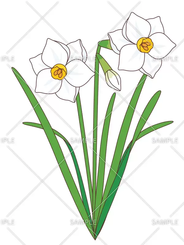 最後は、白い水仙のイラストです。水仙は別名「雪中花(せっちゅうか)」とも呼ばれ、冬景色に映える花として知られています。水仙はお正月の生花にも採用されることが多いので、年明けに使うさまざまな制作物で活躍するでしょう。
