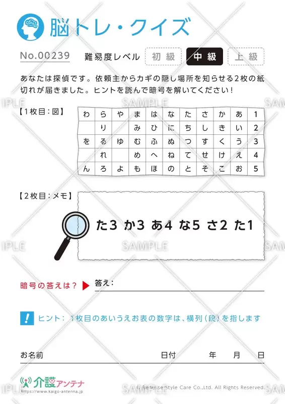 介護レク探偵になって暗号を解く脳トレ・クイズ-No.00974