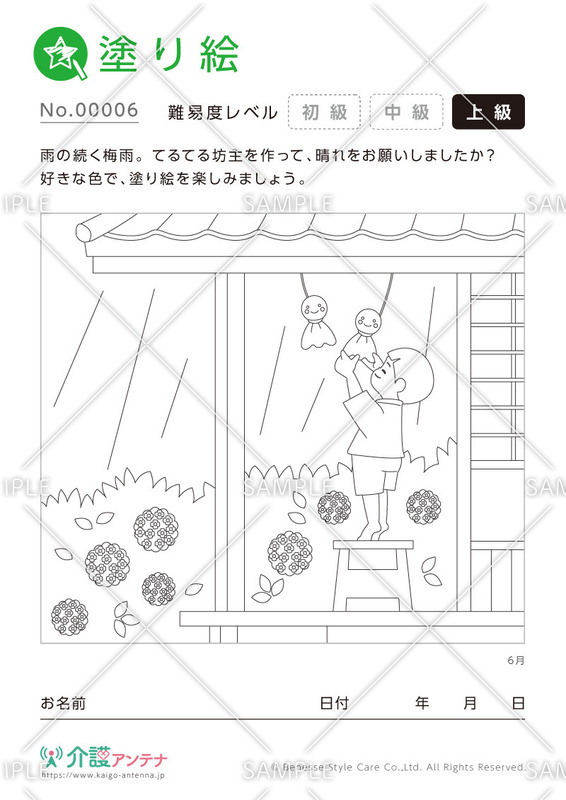 ほかの高齢者向け塗り絵素材「6月向けの塗り絵」を探す