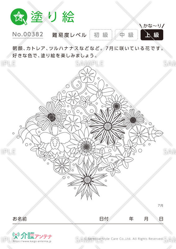介護レク素材大人の塗り絵「7月の花」 - No.00382