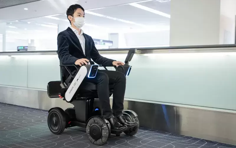 羽田空港第1ターミナル内では、WHILL社が開発した自動運転の車椅子「WHILL Model C」を出発便の搭乗口まで利用することができます。羽田空港第1ターミナルは全長約800mあるため、車椅子利用の方や足腰に不安のある方にとっては心強いサービスですね。