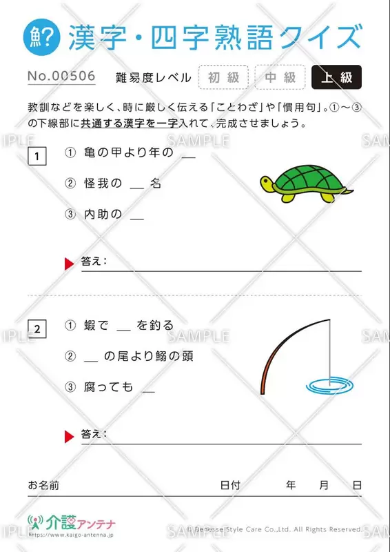 介護レク素材漢字を入れてことわざ・慣用句をつくる漢字・四字熟語クイズ-No.00506